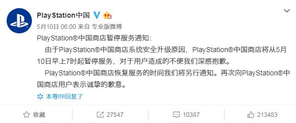 导语:昨日,索尼PS官方微博发布一则通知,宣布PS中国商店暂停服务,官方称是由于系统安全升级原因,但恢复时间另行通知,并向中国用户表示诚挚的歉意。 据了解,索尼的此次操作是由于中国用户的举报造成的,因为国行的PS4可通过后门购买港行游戏,包括一些在国 昨日,索尼PS官方微博发布一则通知,宣布PS中国商店暂停服务,官方称是由于系统安全升级原因,但恢复时间另行通知,并向中国用户表示诚挚的歉意。